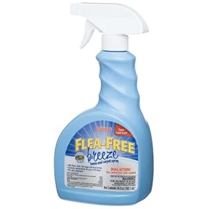 a spray like "Flea-Free Breeze", which not only kills fleas but also keeps flea eggs from developing into biting adults, is a valuable tool in controling and preventing fleas in your home. i bought this product once, and it worked fine. there wasn't an unpleasant chemical odor. the fragrance was pleasant, but any time i used this product in our home, it would cause my husband and i both to start sneezing horribly. we've used other brands of flea-killing fabric spray as well as Febreze in our home in the past without having this kind of problem, so i never expected to have this kind of reaction. a fabric spray that both kills fleas and provides a fresh fragrance really is a great idea, but if you're even the least bit sensitive to perfume-y, artificial fragrances (which we generally aren't), you should probably steer clear of this product.