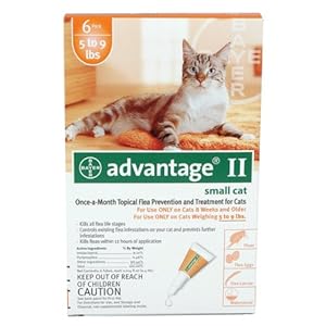 Rid your home of pesky fleas with Advantage II, a fast-working, month-long flea control for your pet. Kills fleas, eggs and larvae. Killing fleas quickly is important, as it prevents them from laying eggs and helps reduce the risk of secondary problems, such as flea allergy dermatitis and tapeworms. Advantage II stops biting fleas in less than 5 minutes, over 99 percent of flea larvae within 20 minutes, at least 98 percent of fleas within 12 hours, and 100 percent of chewing lice in just 1 week. Each application of waterproof Advantage II keeps your cat free of fleas for a full month. Flea bites can cause discomfort for your pet, lead to skin infections and allergic skin reactions causing irritation, and can even transmit other disease-causing organisms. Safe for all cats 8 weeks or older that weigh 0-9 pounds. Includes a 6-month supply.