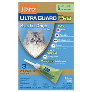 Hartz UltraGuard Pro Flea ; Tick Drops offers complete protection and prevention against fleas and ticks in a convenient once a month application. Designed with a Pro-cision Flo applicator for an easy and pleasant application experience - simply press and twist to activate the topical applicator. Hartz UltraGuard Pro Flea ; Tick Drops are formulated with an Insect Growth Regulator (IGR) to kills flea eggs and larvae, halting current infestations and preventing future reinfestations. These Topical drops are a convenient once a month application to protect against fleas and ticks. Contains a 3 month supply.